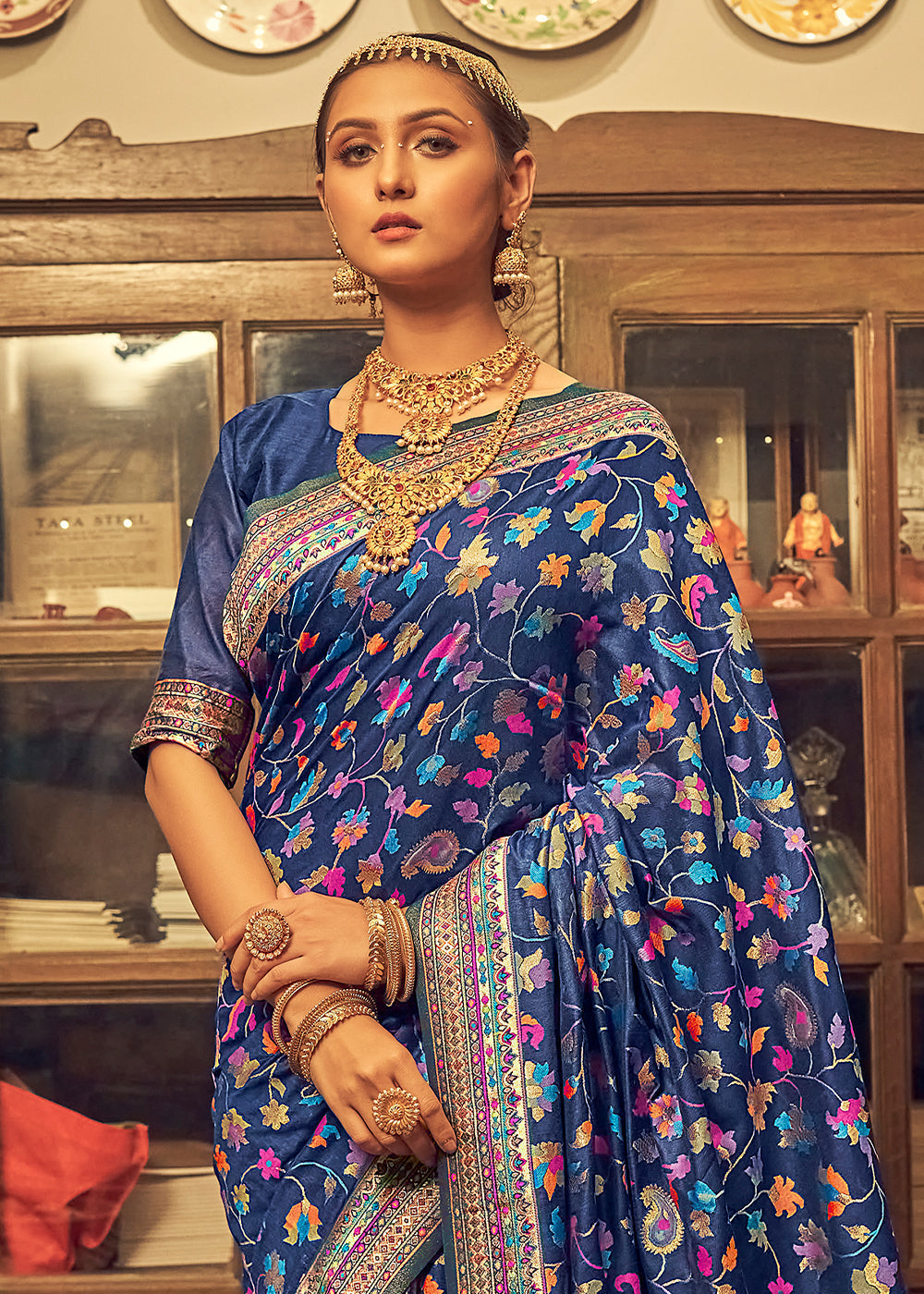 Admiral Blue Kashmiri Weaving Silk Saree