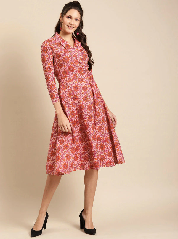 Look your absolute best as you head out wearing this printed dress. Crafted using the finest cotton fabric, this apparel makes up for the utmost comfort. Complement this outfit with a pair of high-heels and chunky jewellery to complete your look.